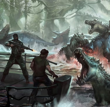 Welcome to the savage world of Primitive War RPG, where dinosaurs roam the earth once more, and this time, we are the prey. Dark Entity presents one of the most ferocious role-playing games ever crafted, set in a Dinopunk universe that has redefined the genre. This thrilling world is brought to life by the vision of Ethan Pettus, one of modern literature's most brilliant authors.